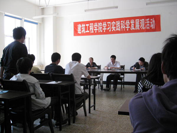 为进一步深入贯彻落实科学发展观,本着“一切为了学生、为了学生的一切”的理念,结合期中教学检查,建筑工程学院学生会于2009年5月4日在会议室召开了全院师生学习交流座谈会,并听取了学生对教师的意见和建议,学院辅导员老师以及各年级学生代表参加了此次交流座谈会。