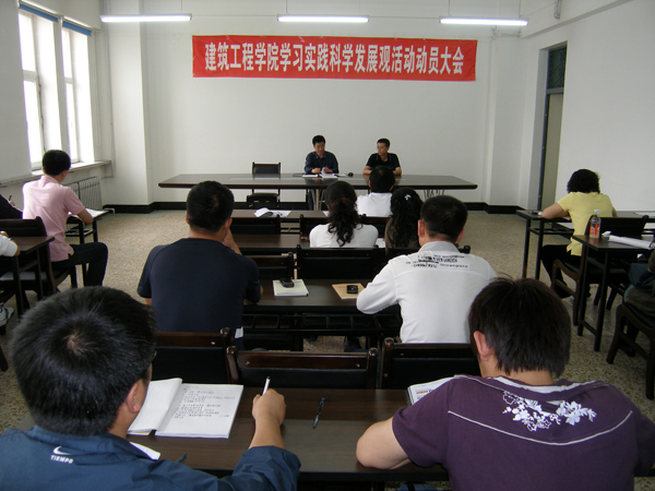按照学校学习实践活动工作总体部署,6月19日下午3点40分,建筑工程学院学习实践科学发展观活动整改落实阶段动员大会在学院510会议室召开,学院班子成员、全体党员参加了此次会议。会议由学院党总支书记曲贵民同志主持,校学习实践活动指导检查组成员刘长军同志参加会议。