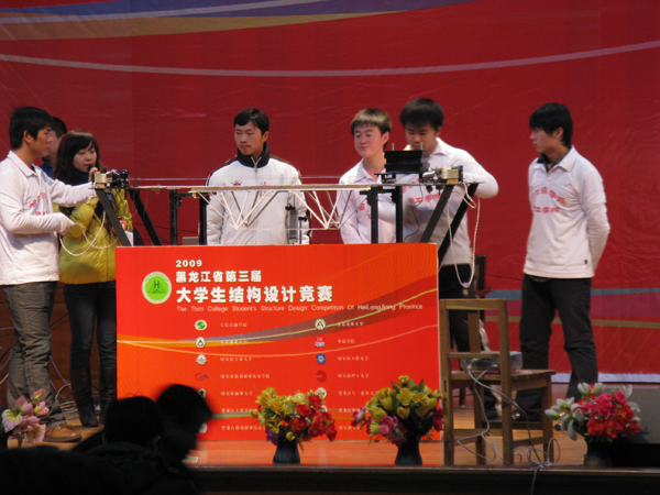 2009年12月6日,黑龙江省第三届大学生结构设计竞赛在哈尔滨学院的报告厅圆满落下帷幕。本次大赛由黑龙江省力学学会主办、哈尔滨学院承办。哈尔滨理工大学代表队在本届比赛中荣获团体二等奖和最佳组织奖、学生单项二等奖一项、三等奖三项和优秀奖四项,为我校争得了荣誉。
