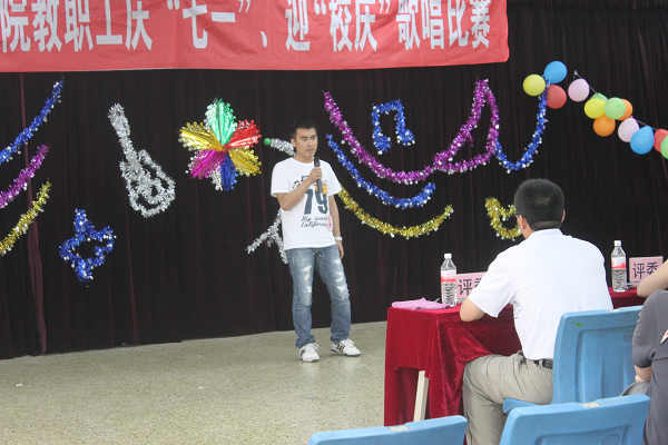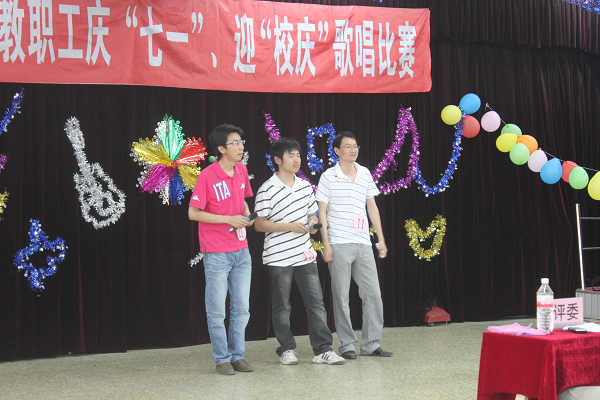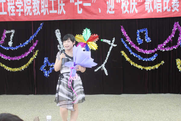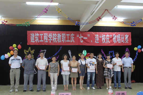 最后,经评委评议,由主持人宣读了比赛成绩:蒋博老师荣获一等奖,吴双双、程新宇老师荣获二等奖,隗喜斌、郭颖、姜黎黎老师荣获三等奖。在掌声的相伴下此次建筑工程学院举办的“庆七一’迎‘校庆’”教职工歌唱比赛落下了帷幕。