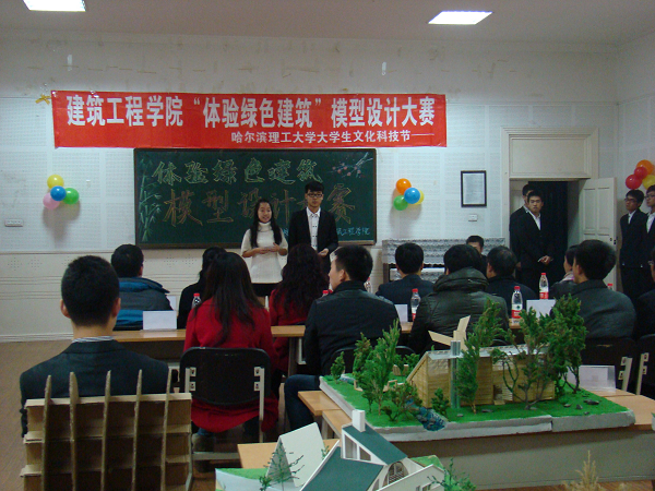 11月7日,由哈尔滨理工大学校团委主办,建筑工程学院承办的“体验绿色建筑”模型设计大赛,隆重落下帷幕。担任此次比赛的嘉宾和评委有:建筑工程学院院长曾涛教授、校团委书记单鹂娜老师、学生处副处长王丽娟老师、党总支副书记周晓丽老师、校团委姜国玉老师、工程力学系主任李冬华老师、建筑学系主任孙伟斌老师(国家一级注册建筑师)、土木工程系副主任王晓东老师以及建筑工程学院全体辅导员老师。