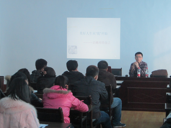 讲座刚刚开始,老师就用生动形象的比喻和几个趣味游戏案例深深地吸引住了所有在场同学。大学生作为一个特殊的社会群体,会遇到许多特殊的问题,如进入大学生活后对新的学习生活环境的适应问题、理想与现实的冲突问题等等。讲座过程中,刘老师首先从主客观两方面阐述了自我的定义,又从“认识自己”、“接纳自己”、“发展自我”三个板块进行了深入讲解,通过PPT、带领学生做现场互动等方式,理论联系实际、深入浅出的对这些问题进行了生动的描述与解答,运用娴熟的讲解技巧让同学们意识到只有正确对待自己,才能认识到什么对我们最重要,我们能改变什么,才能真正的清楚我们的追求。同时强调同学们应该培养自己的独立实践能力。任何时候都要积极的暗示自己“我能行”,只有接受自己,才能发展自己。