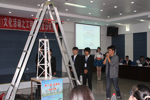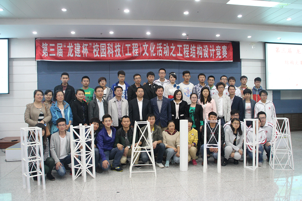 2013年9月16日下午,第三届“龙建杯”校园科技(工程)文化系列活动之结构设计大赛在哈尔滨理工大学西区一号楼多功能厅举行。本届“龙建杯”由黑龙江省教育厅、黑龙江省公路协会、黑龙江省龙建集团和黑龙江工程学院主办,分为路桥知识竞赛、结构设计大赛、立交桥设计大赛、测量技能大赛和路桥风采摄影大赛五个系列活动,其中结构设计大赛由哈尔滨理工大学建筑工程学院承办。本次结构设计大赛有来自哈尔滨理工大学、哈尔滨工业大学、东北林业大学、黑龙江大学、黑龙江工程学院等省内10余所高等院校参加,黑龙江工程学院土木与建筑工程学院院长武鹤教授以及兄弟院校土木系负责人应邀出席了本次大赛。