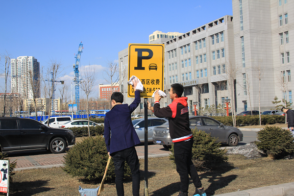 在学雷锋活动月期间,建筑工程学院学生会利用每周的周末组织了多次校园义务清扫活动,新主楼、二号楼、校园内的宣传栏等处处有建筑学院学子劳动的身影,大家对楼前的草坪及附近道路进行清理,清理涂鸦、小广告,同学们不怕脏,不喊累,互相配合。草坪及道路均已不见塑料袋等白色垃圾。同学们用自己的实际行动为学校增添一份清新,一抹明亮。
