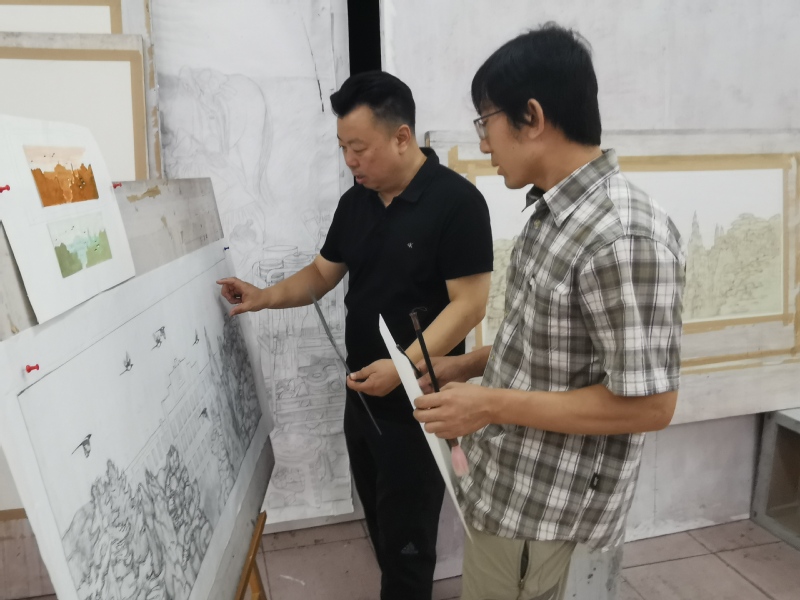 校党委副书记陆岩为画作选题作指导